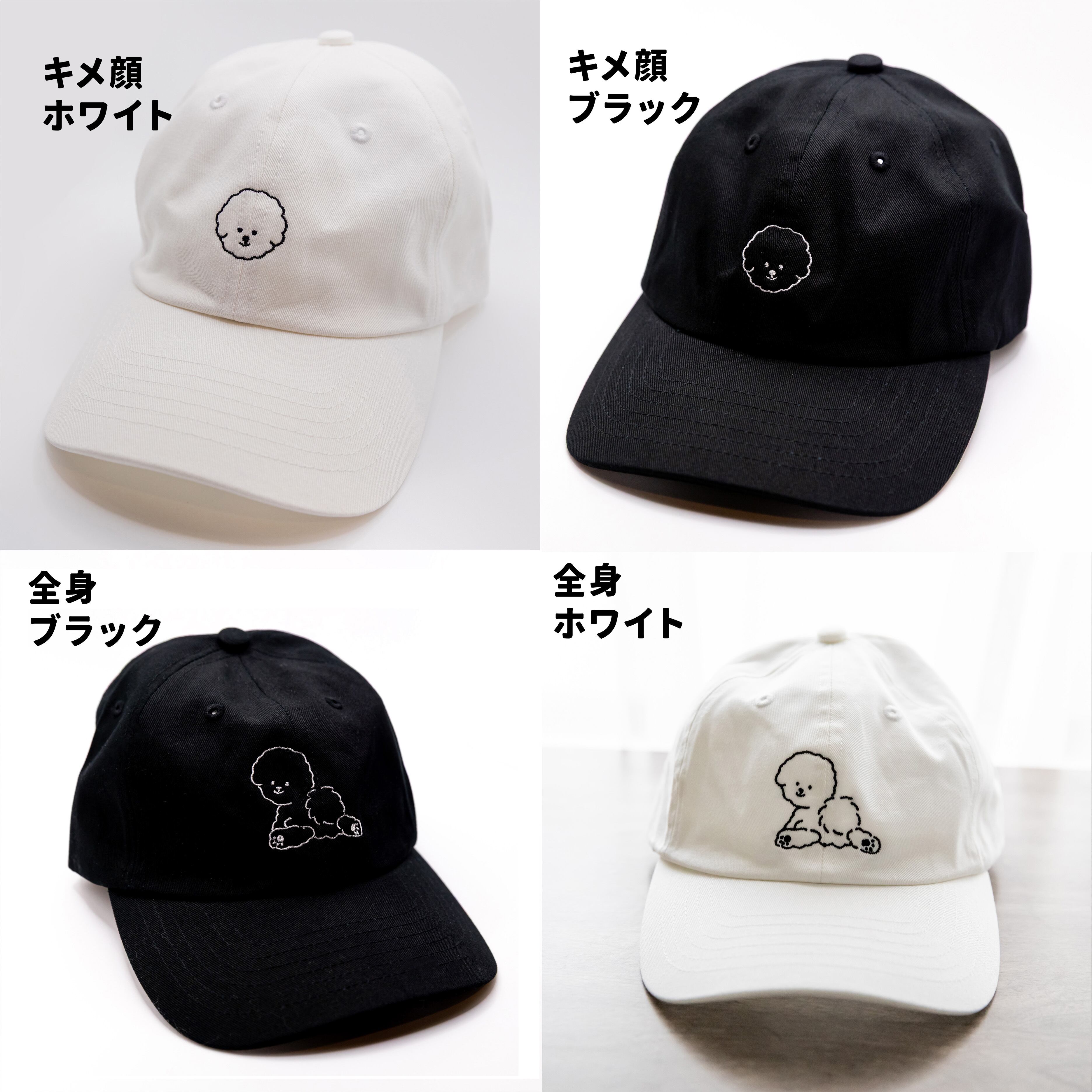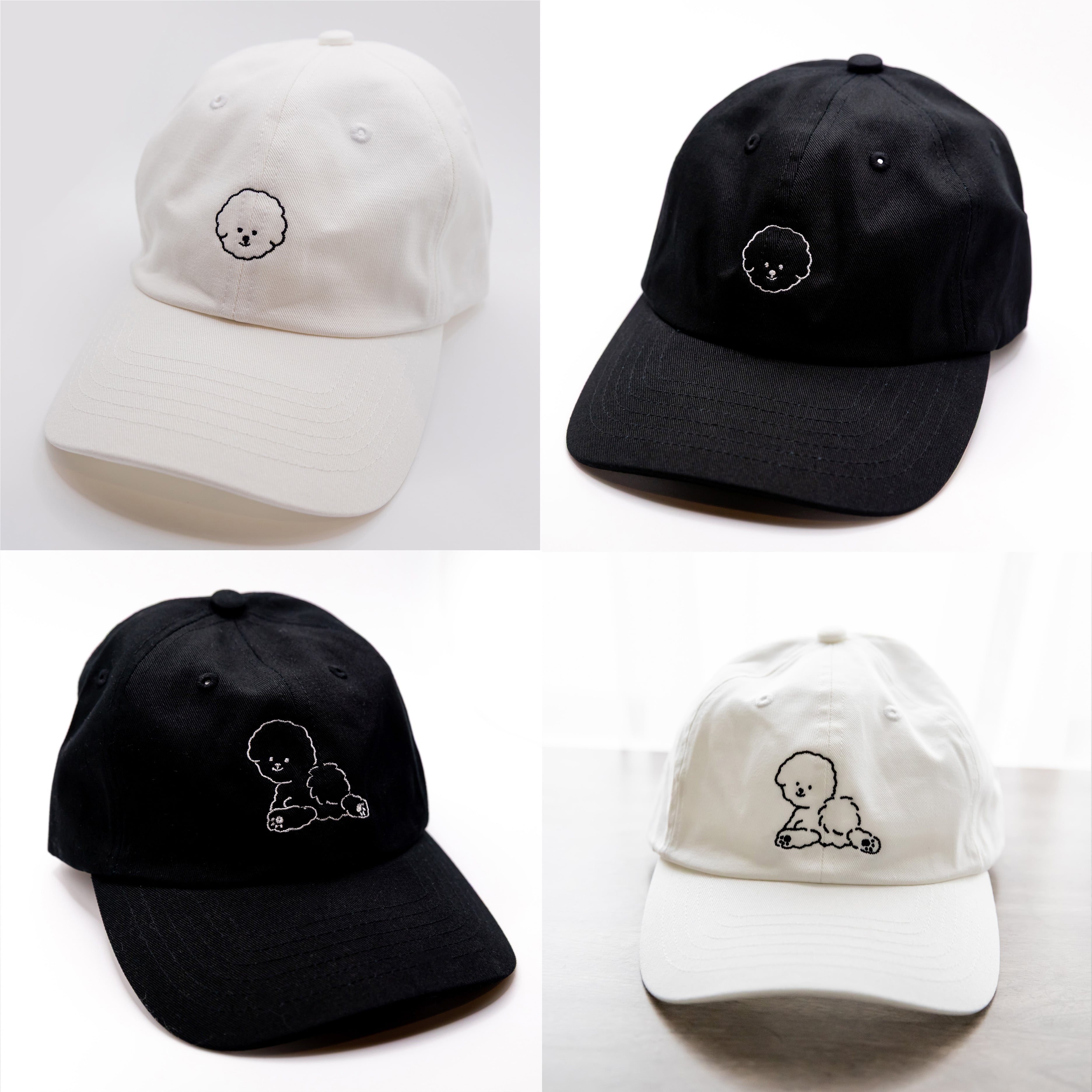 【しろくろふぁみりわん】刺繍キャップ:ビションフリーゼ