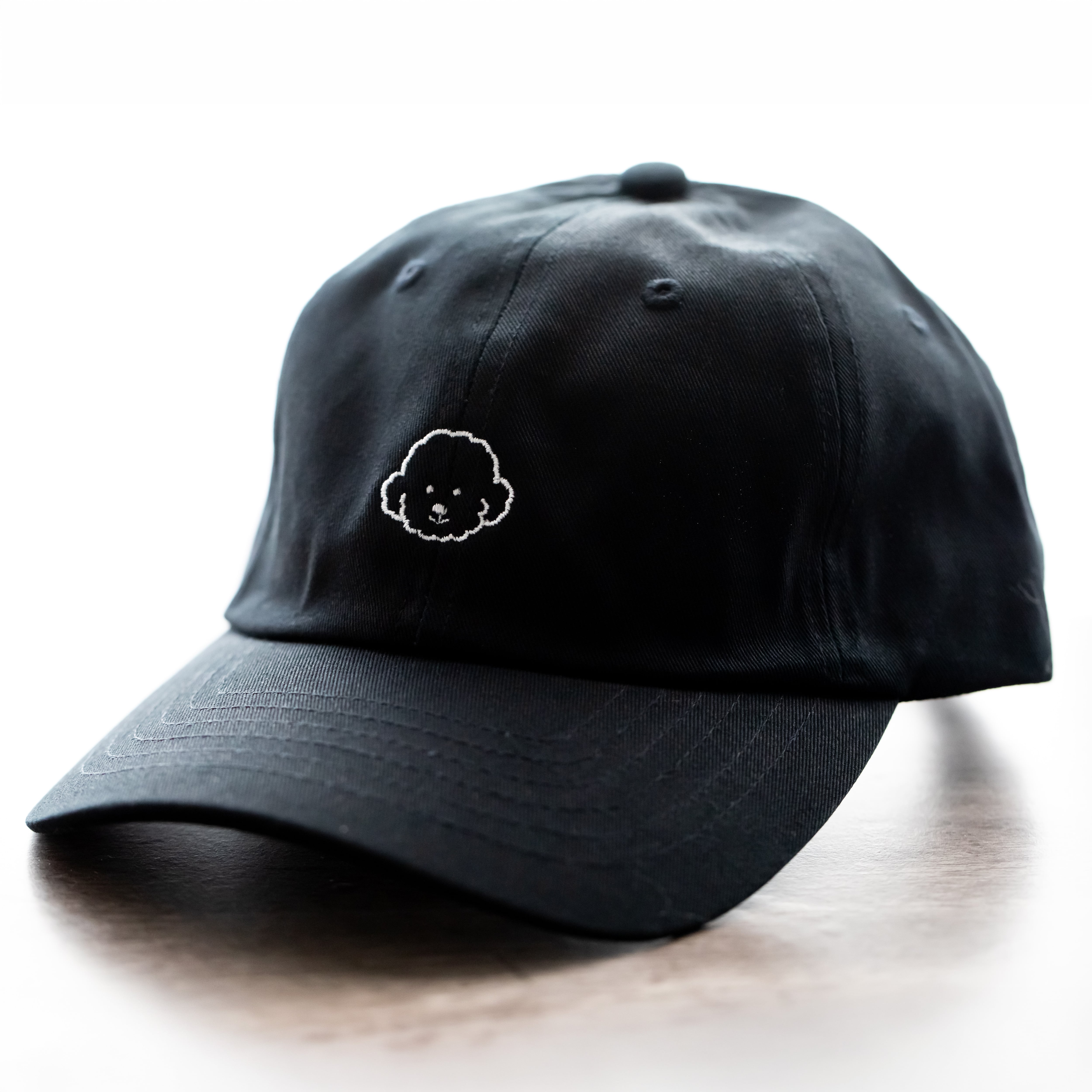 【しろくろふぁみりわん】刺繍キャップ:みみぴょこ(キメ顔)ブラック