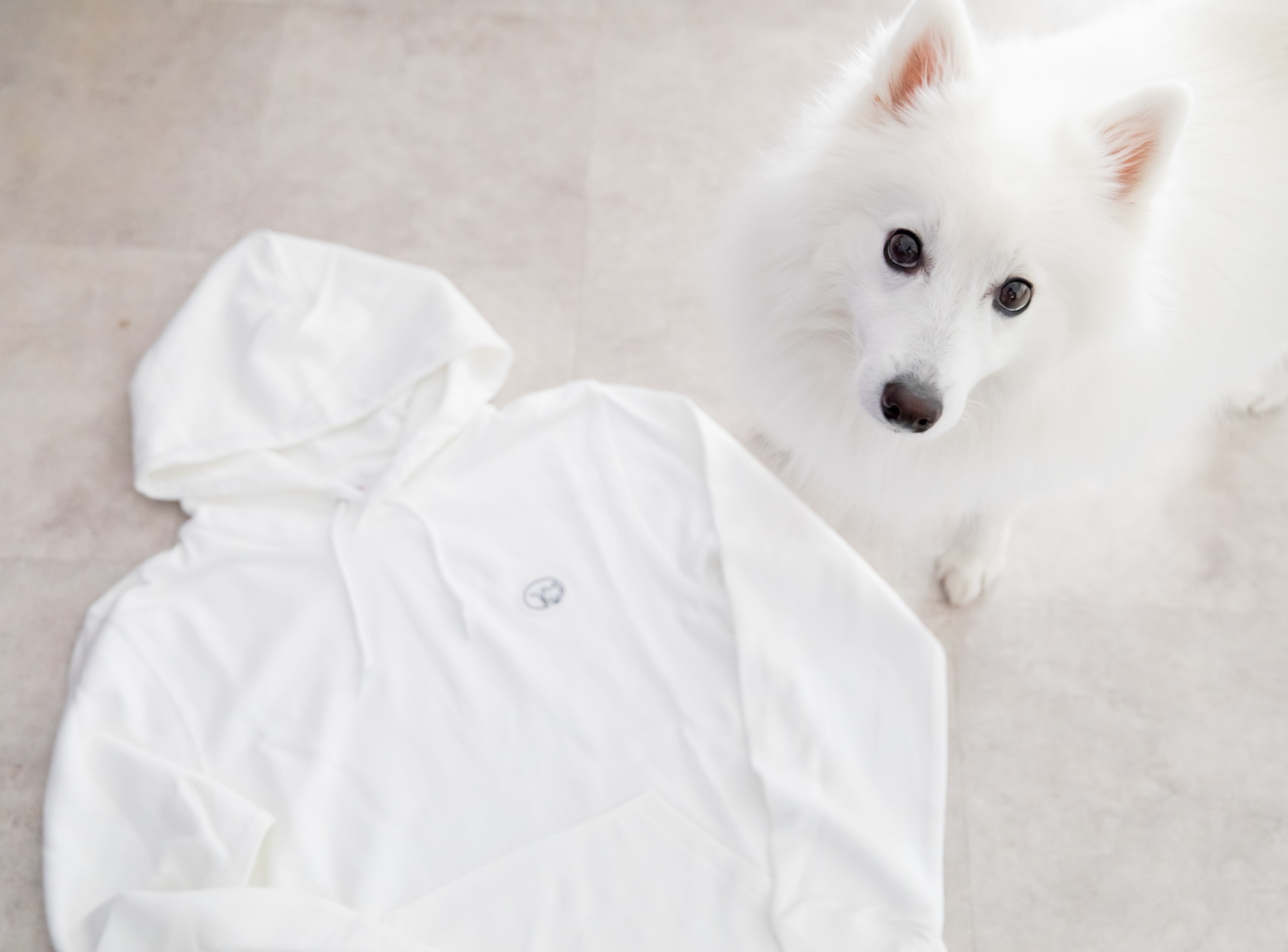 こちらは、日本スピッツモチーフの刺繍フーデッドパーカーです。